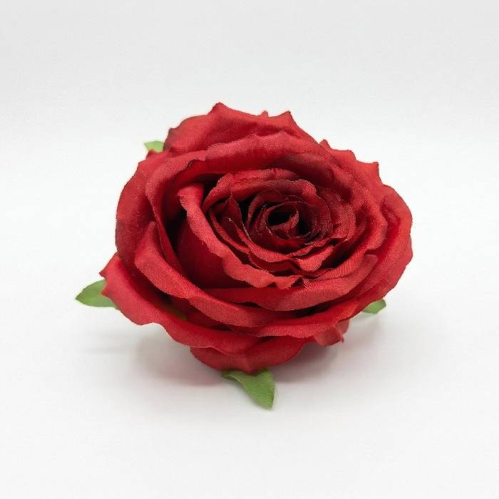 Sztuczna główka róży o średniej wielkości, idealna do osadzania na drutach lub łodygach wyrobowych. Doskonała baza do tworzenia trwałych kompozycji florystycznych, wieńców oraz stroików.